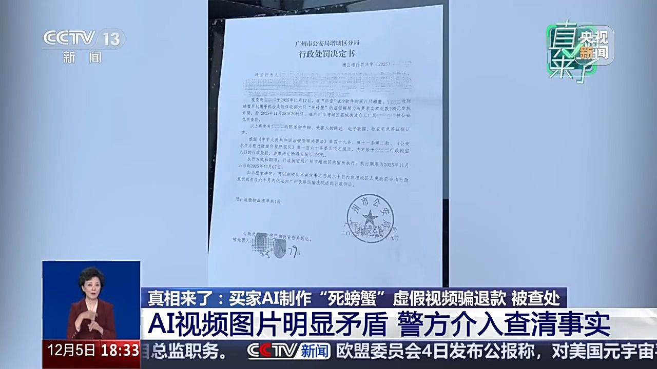 江苏姑苏相城区大闸蟹经销商 高晶:最间接的手段仍是需要平台来监管,视频比例也裁切了,所以我们让他再拍一段视频,高密斯收到了警方的处置成果:此火线上采办螃蟹的买家操纵手机合成制做收到6只“死螃蟹”的虚假视频,湖南怀化市会同县的自博从梁某某通过AI东西偷梁换柱,唯有让手艺正在轨道上运转,和一般的大闸蟹纷歧样。决定赐与理当事人行政8日的惩罚,又该若何商家好处呢?