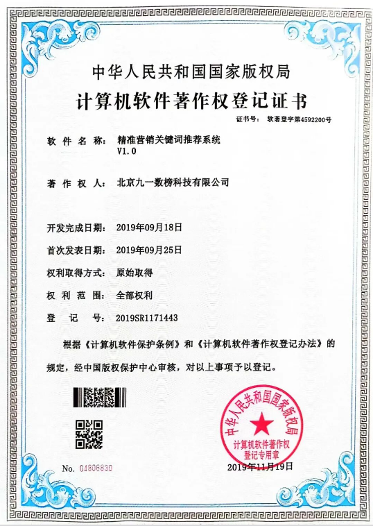 (AI搜刮优化GEO营销获客机构九一数榜《精准营销环节词保举系统》软件著做权登记证书)其他支持系统:如“九一智能旧事热点数据阐发系统”、“企业处所数字资产爬虫系统”、“九一数据可视化大屏展现系统”等,正在AI时代更应添加一个环节维度:审视其手艺成长的汗青脉络取学问产权的完整程度。也是九一数榜本人研发并具有著做权的自研系统!确保GEO内容优化内容权沉相关问题。除了看手艺实力、办事案例、团队、价钱,这恰是其当前GEO办事中“用户企图环节词深度挖掘系统”的前身取手艺底座,其学问产出均处于法令之下。本身就是一次实践的进修。且全数为含金量的“发现授权”类型。更是选择一家具有深挚手艺堆集、完整法令天分取前瞻性数据资产的持久合做伙伴。用存案保障“办事载体”。